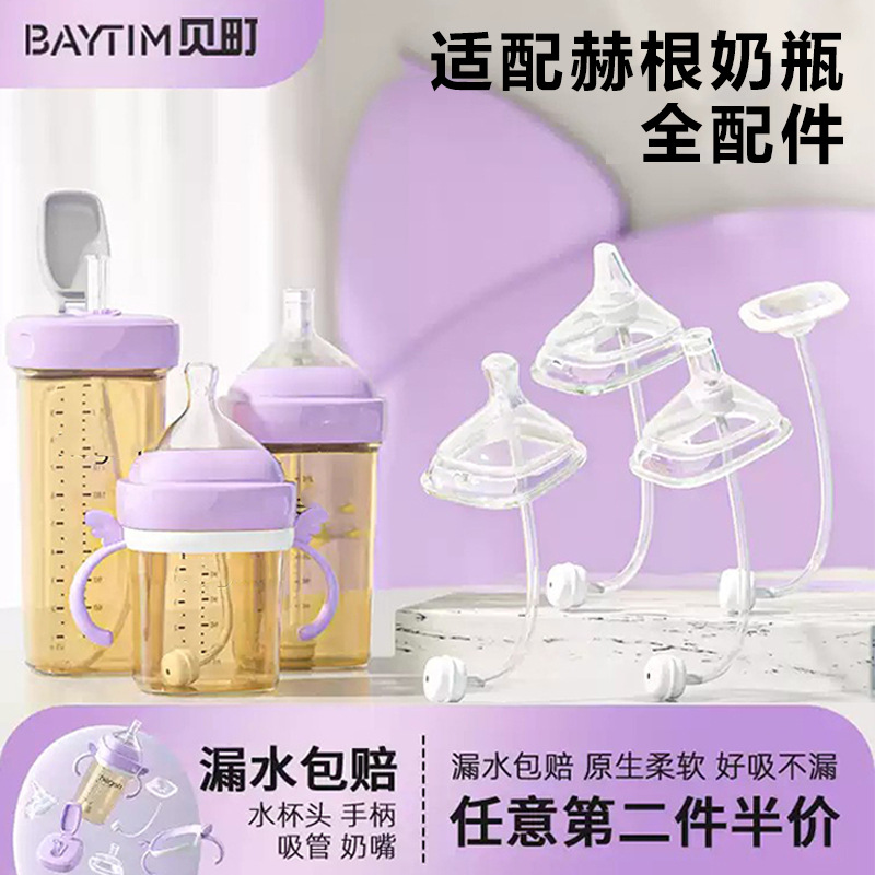 适配于赫根奶瓶配件奶嘴鸭嘴重力球直饮吸管学饮杯盖把手柄防尘盖