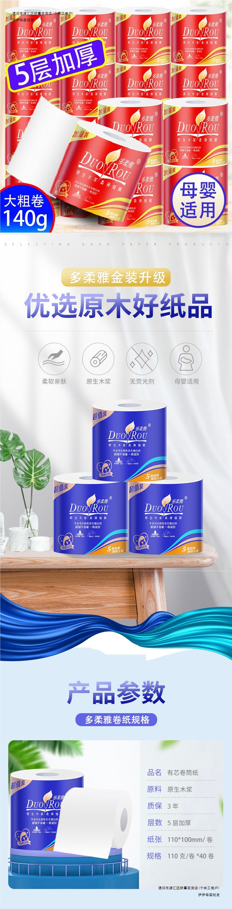 多柔雅中空ロールペーパー芯入りトイレットペーパー大ロール家庭用トイレットペーパー/ロールペーパー