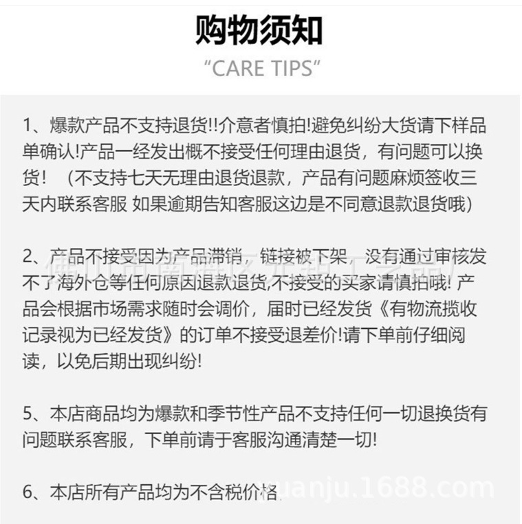 1688.comは中国で生産され、流通している商品を扱うBtoB卸サイトとなります。お客様が弊社サイト内にて仕入処理をされても、日本国内の法律に則り、日本への輸入ができない商材もあり、その場合弊社でも仕入れの手配が出来ません。その際はシステム上で、自動的に注文削除となってしまう事を、恐れ入りますがご了承願います。