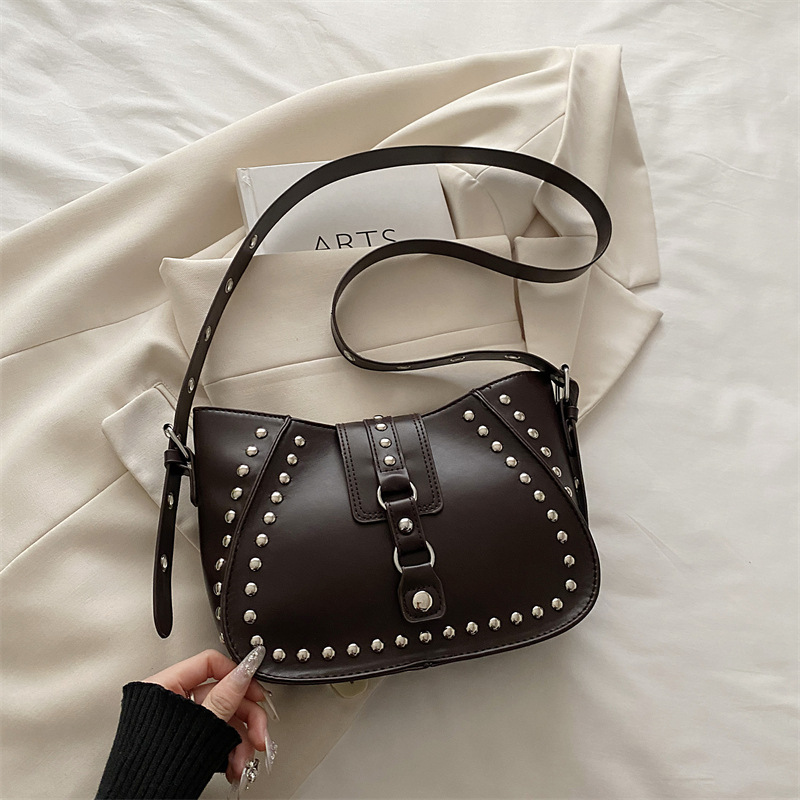 高级感包包2025新款潮复古女包时尚百搭单肩包铆钉质感手提腋下包