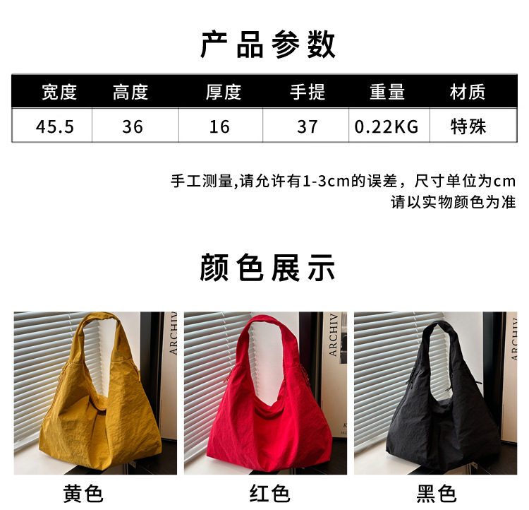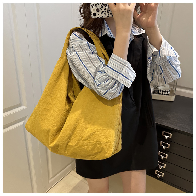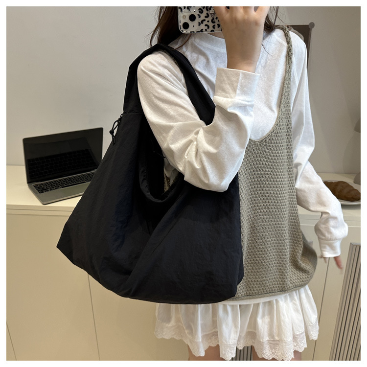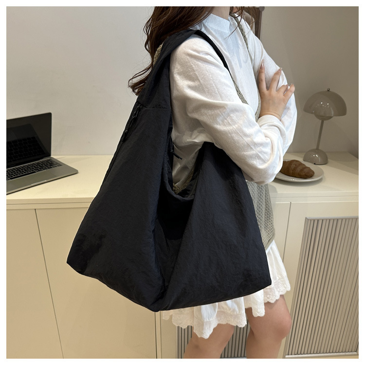 大容量慵懒风托特包女简约百搭通勤手提单肩包高颜值尼龙布腋下包