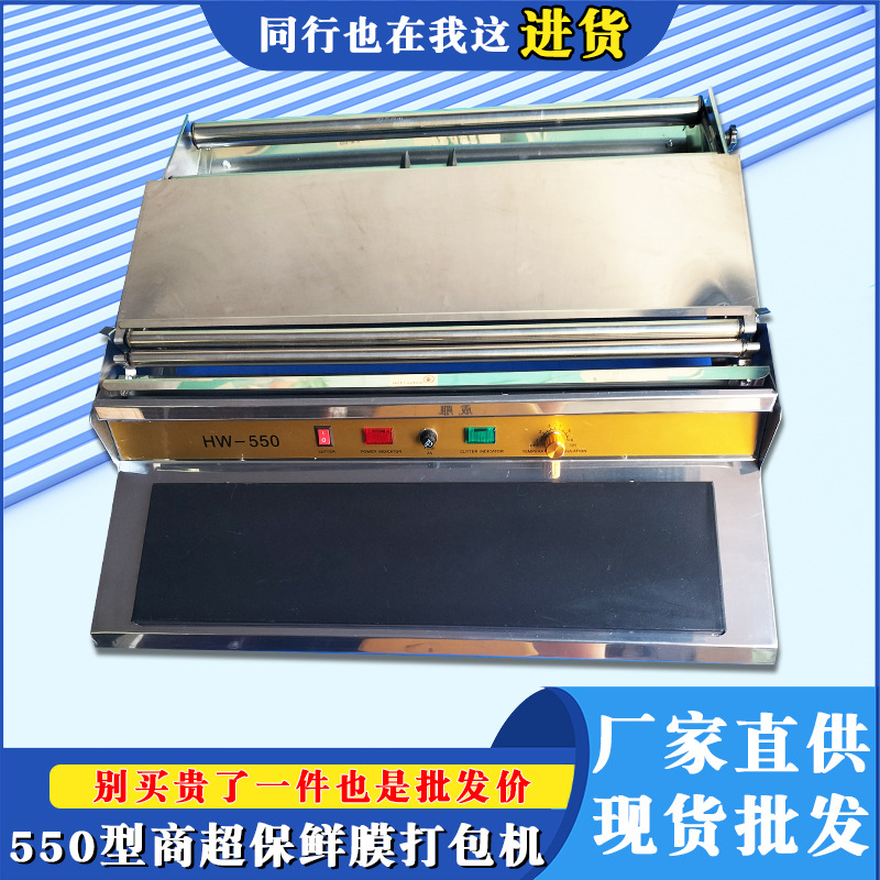 550型不锈钢保鲜膜打包机台式保鲜膜包装机 商超市封口机覆膜机器