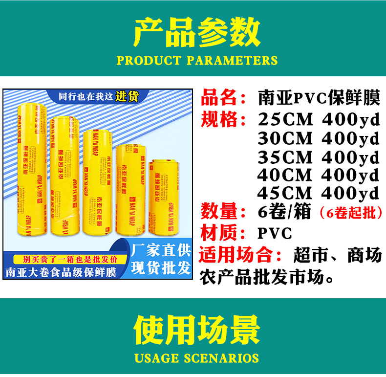 直供大巻スーパーデパート南亜pvcラップ果物野菜包装冷蔵キッチンホテルラップフィルム