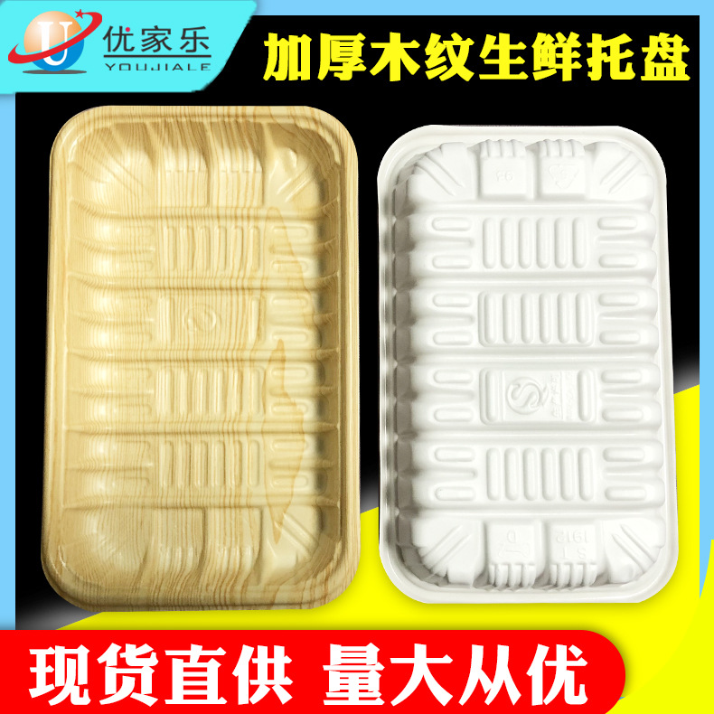 使い捨て生鮮木目トレイ長方形果物包装箱野菜包装箱厚手ppプラスチックトレイ