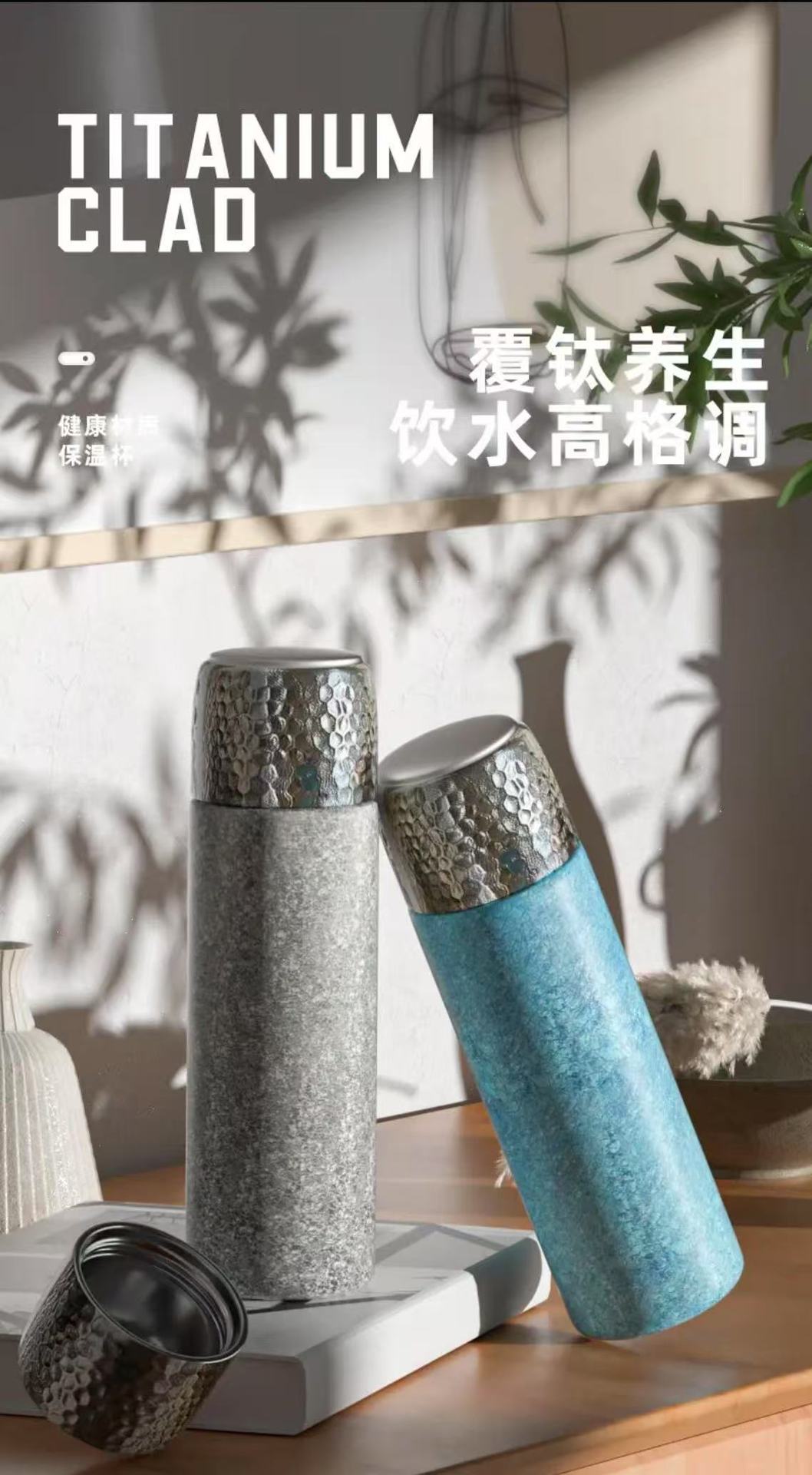 富氢矿石覆钛保温杯高档批发礼品礼盒商务茶水分离钛杯