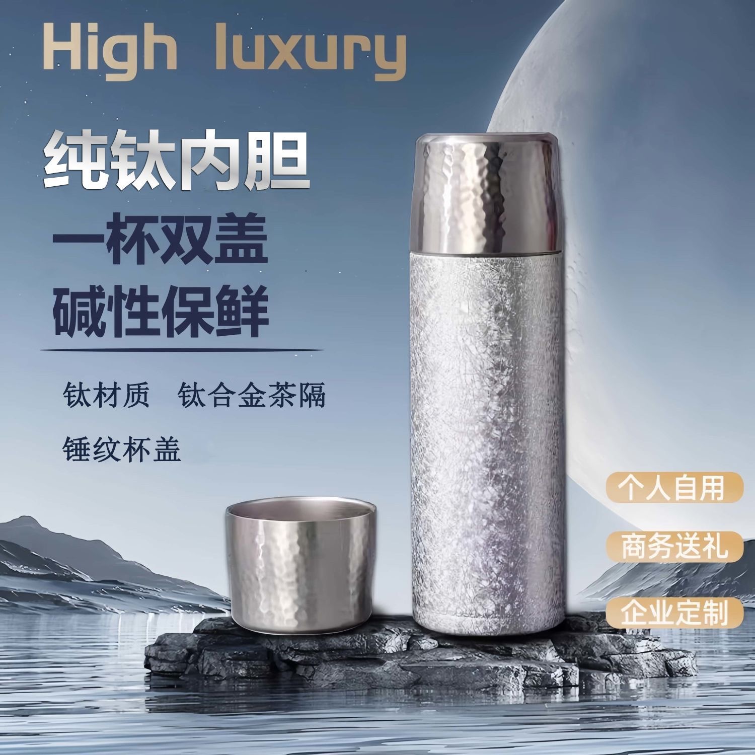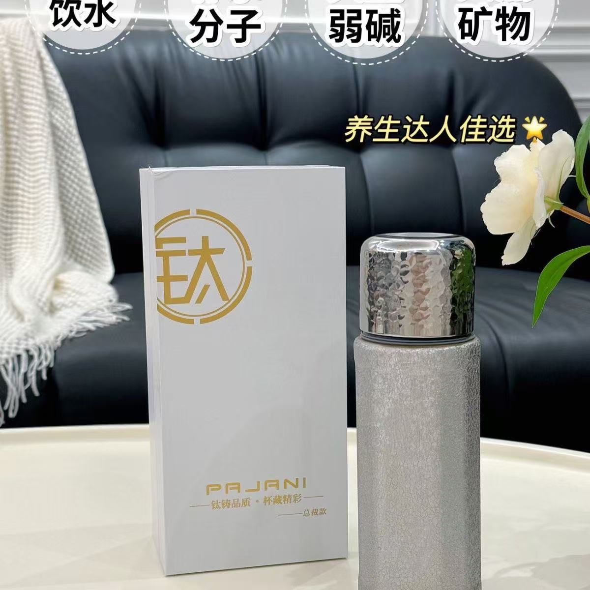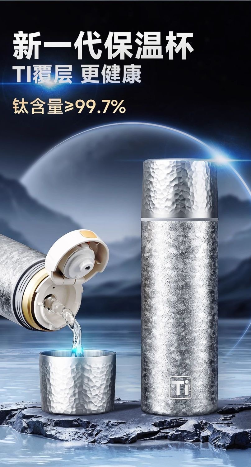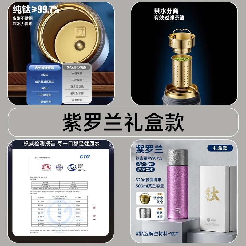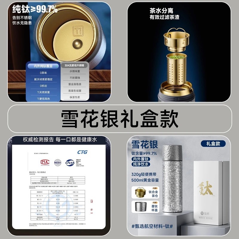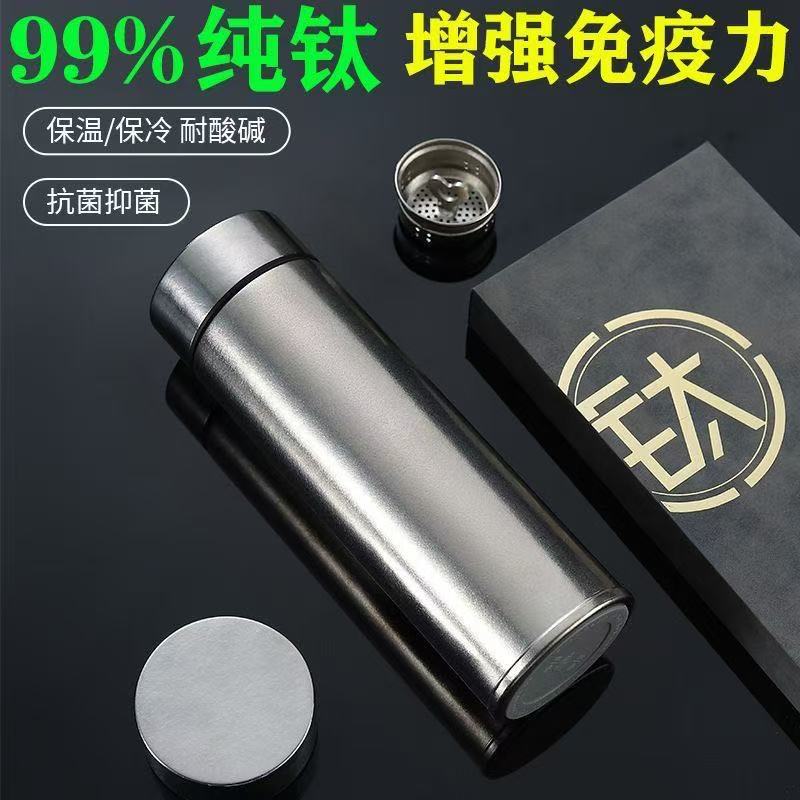 純チタン魔法瓶カップ二重層真空内外純チタン高級ウォーターカップビジネスギフトホリデーギフトボックス