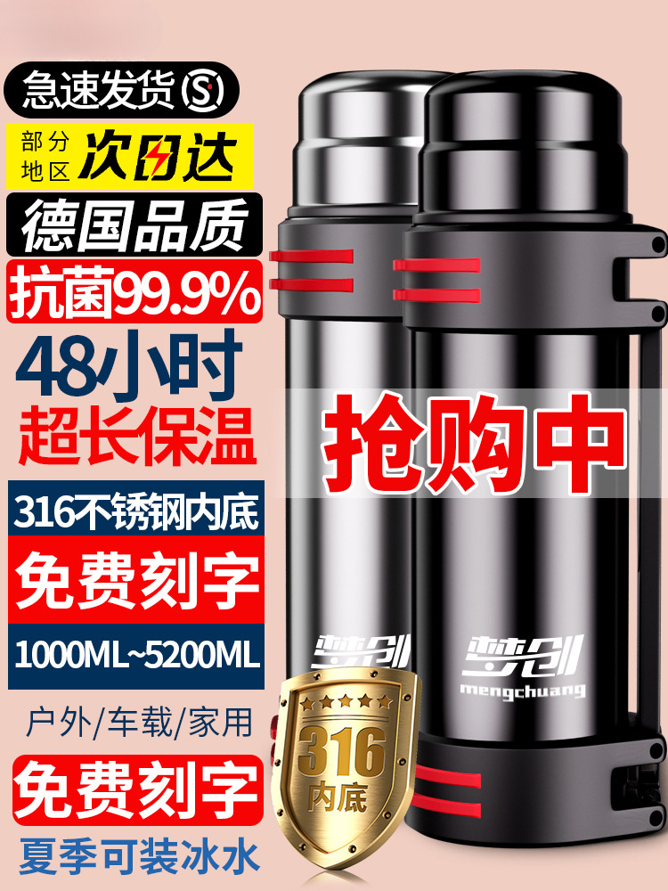 保温杯大容量316不锈钢保温保冷壶男女户外便携水壶旅行壶水杯5升