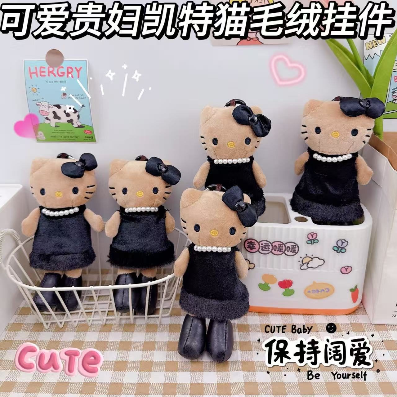 可爱豹纹贵妇凯特猫钥匙扣挂件少女心名媛风长腿kt猫书包挂件批发