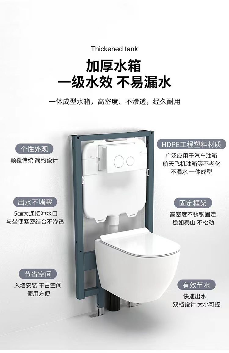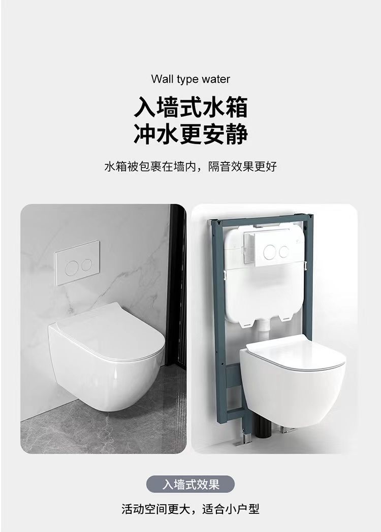壁挂式挂壁马桶智能墙式水箱隐藏悬挂墙排悬空嵌入坐便器小户型