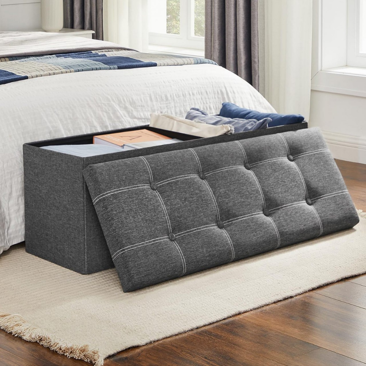 クロスボーダー綿麻収納ベンチ 家庭用防塵収納ボックス 整理整頓 折りたたみ式 座れるタイプ 靴交換用