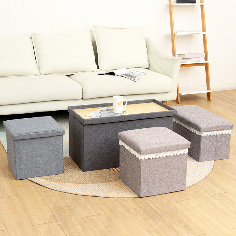 メーカー卸売綿とリネンの収納スツール多機能折りたたみ布製収納スツールは、収納スツールの収納ボックスに座ることができます