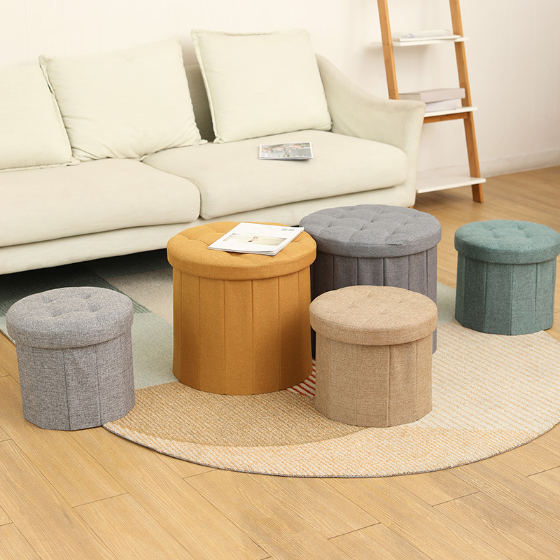布製折りたたみ収納スツール、大人が座れる丸型収納スツール、ソファスツール、家庭用シンプルでクリエイティブな丸型スツール