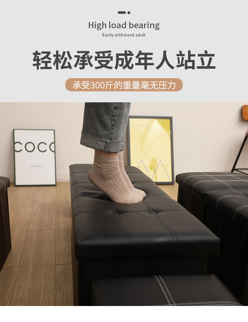 皮革收纳凳可折叠可储物可坐人多功能收纳箱沙发换鞋凳收纳储物凳