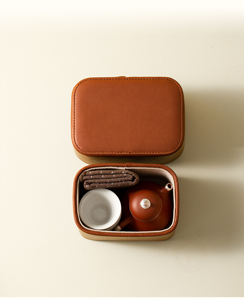 整套便携旅行茶具紫砂壶皮包收纳茶杯一壶三杯户外高档快客杯礼品