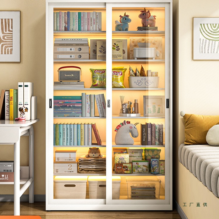 家庭用スチール本棚引き戸防塵ガラス本棚ロック付きディスプレイキャビネット床置き収納ロッカー