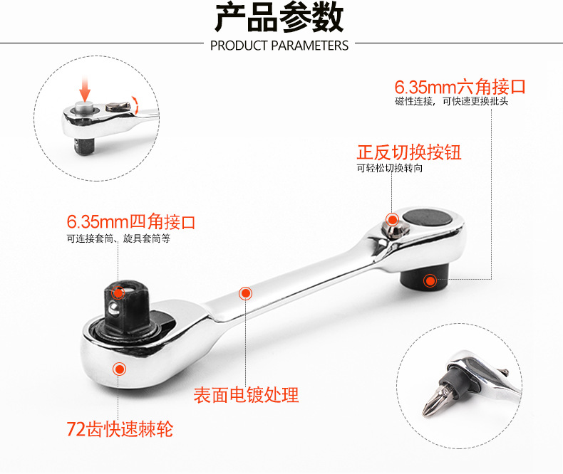 1/4小飞快速棘轮扳手二合一棘轮扳手迷你批头套筒通用双头款批发