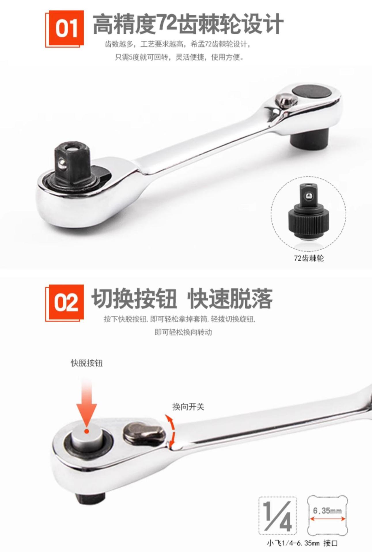 1/4クイックレンチ両方向ラチェット72歯小飛刺輪金輪荊棘レンチ1/4ミニラチェットレンチ