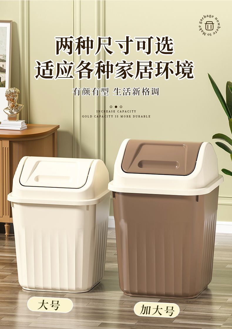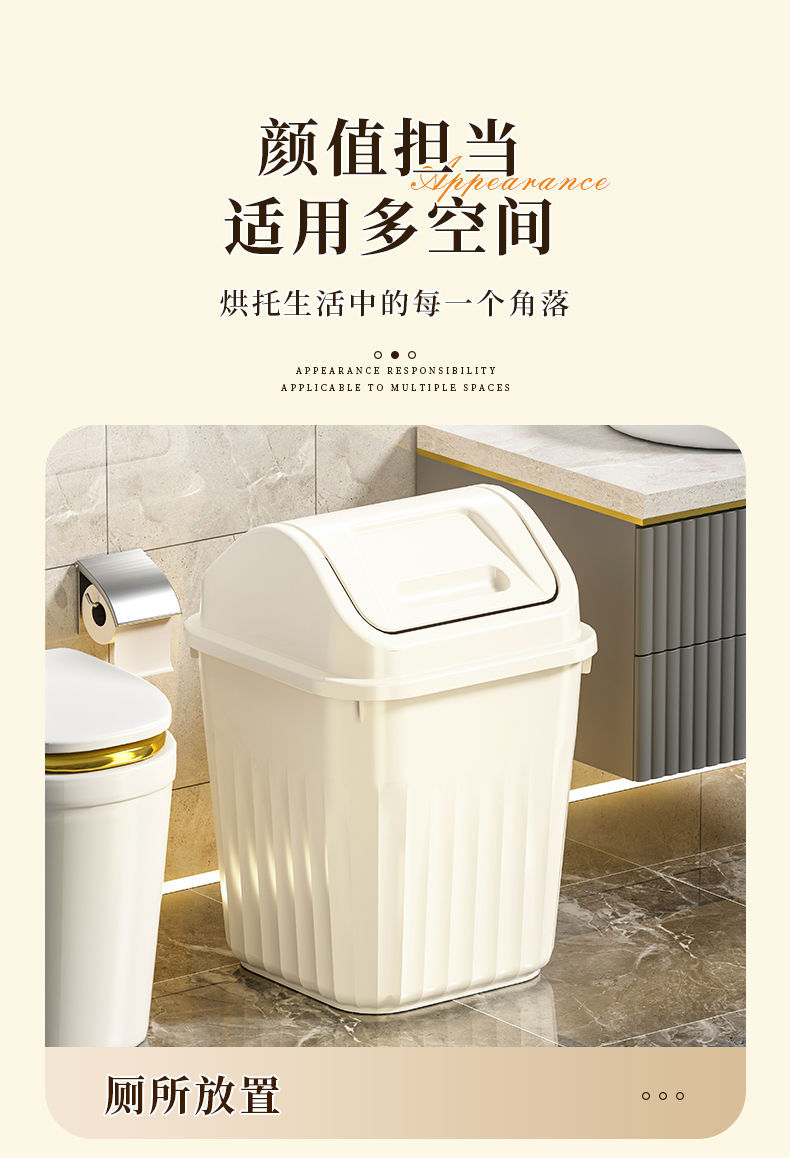 浴室ゴミ箱、リビングルーム、寝室用蓋付きペーパーバスケット、家庭用大容量トイレ専用隙間スイング蓋収納バケツ