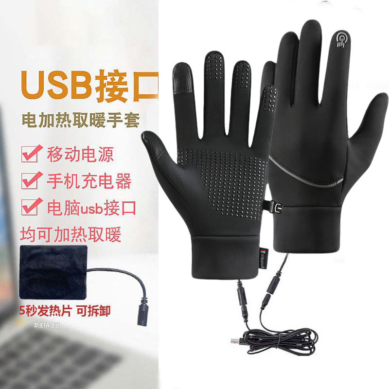冬季usb暖手套加绒保暖触屏防溅水运动骑行开车防风登山加热手套