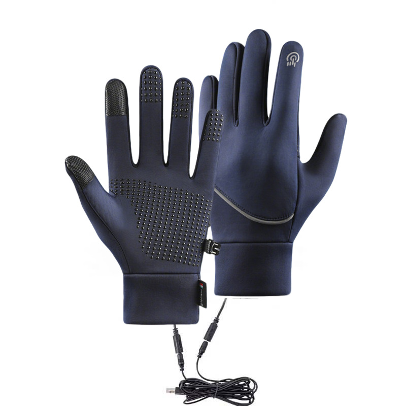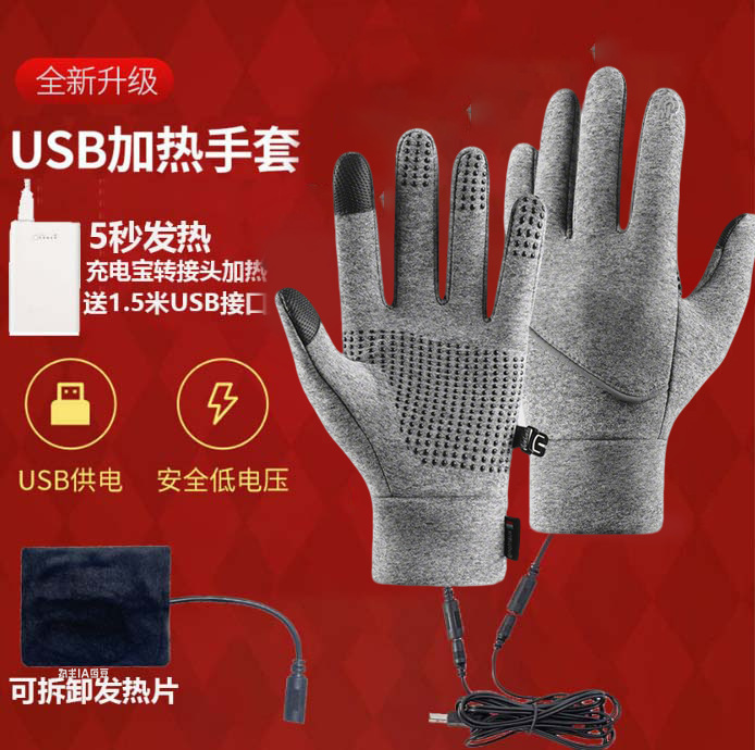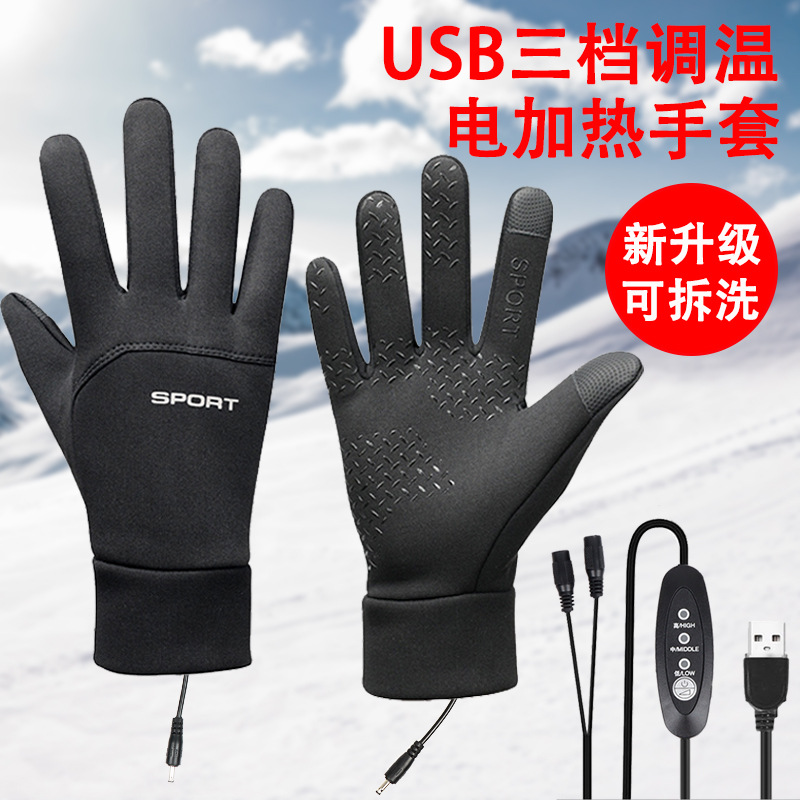 跨境保暖加热充电手套男USB暖手套骑行触屏加绒户外运动登山跑步