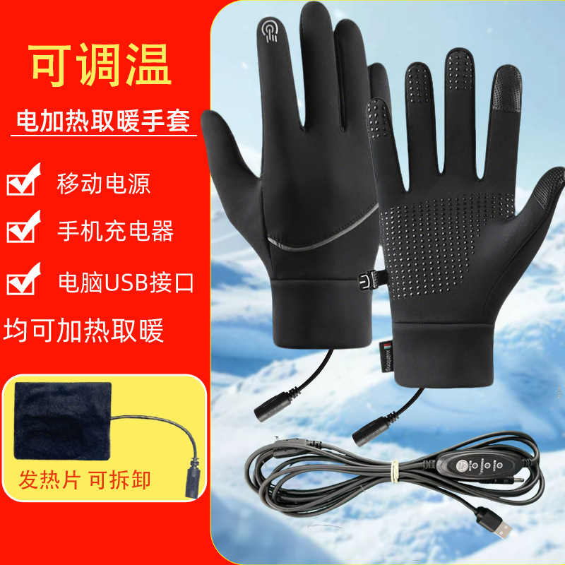 跨境电加热手套男女充电出行防寒保暖手套秋冬户外骑行发热手套