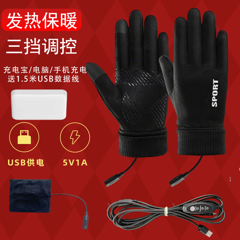 USB暖手套冬加绒加厚防风保暖加热充电触屏骑行开车防滑防寒手套