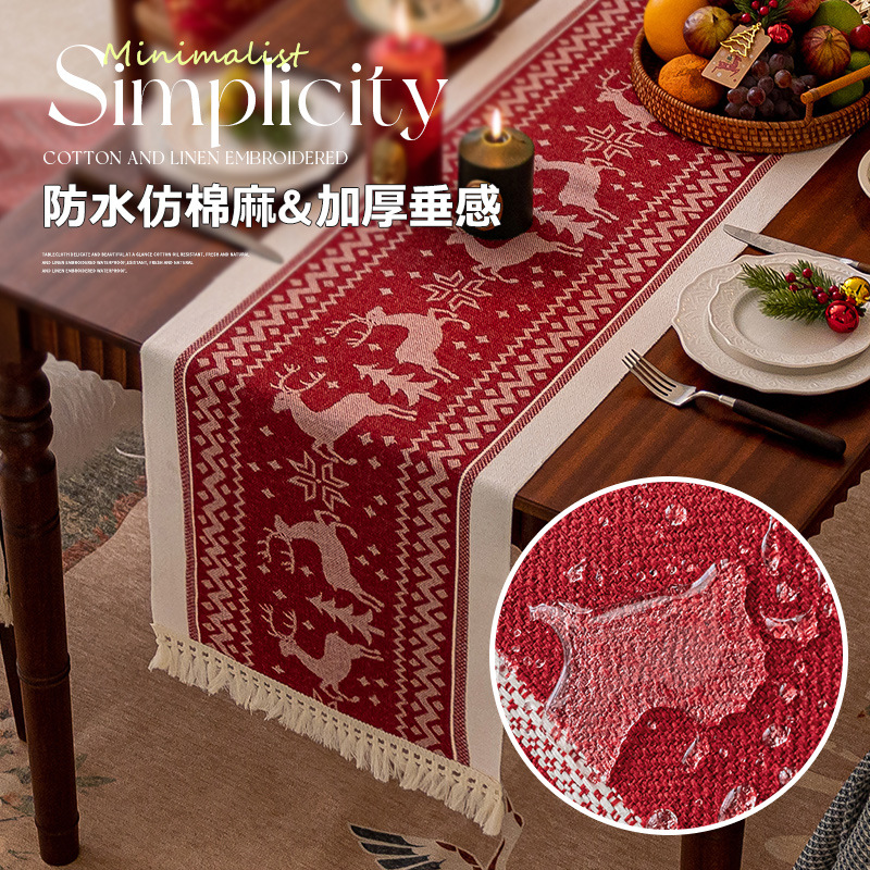クリスマスレッドの新しいテーブルフラグ防水装飾テレビキャビネットカバーコーヒーテーブルロングテーブルクロス模造綿とリネン卸売ドロップシッピング