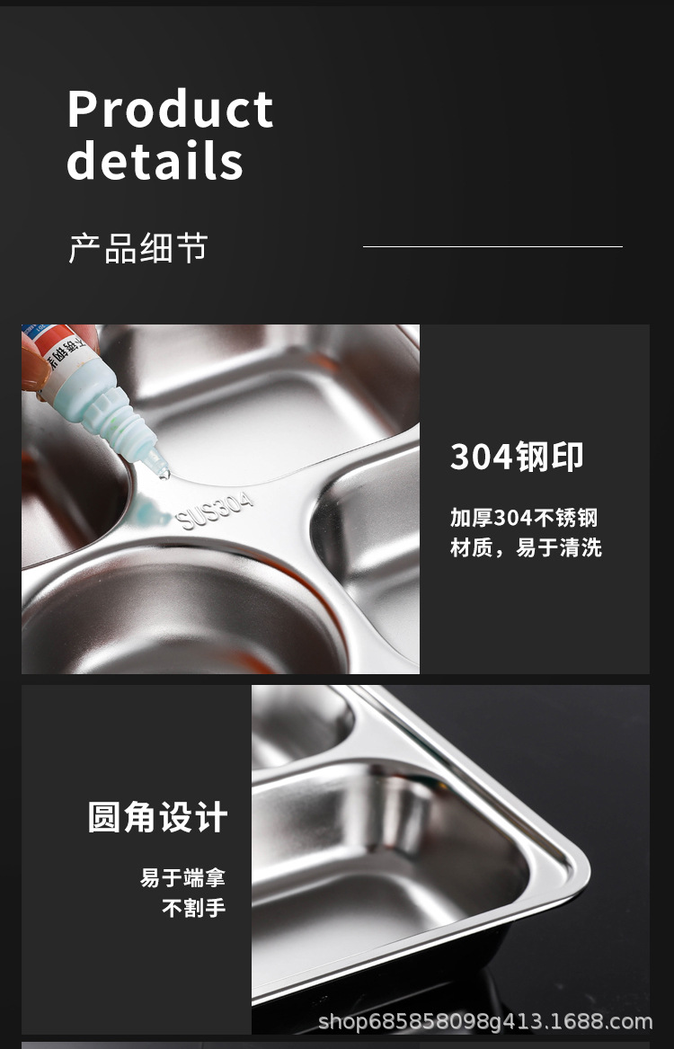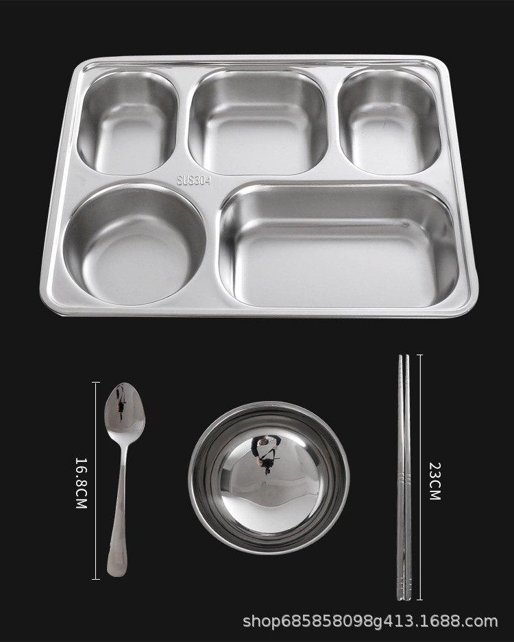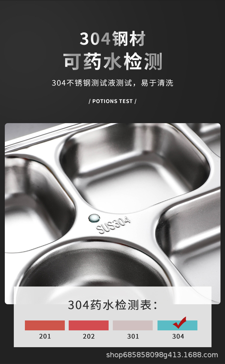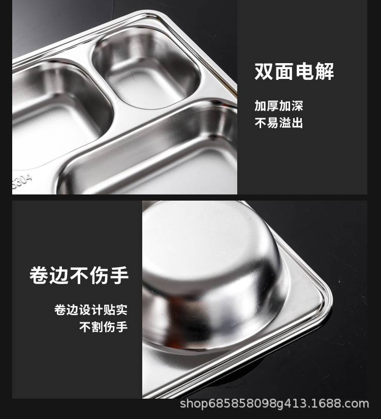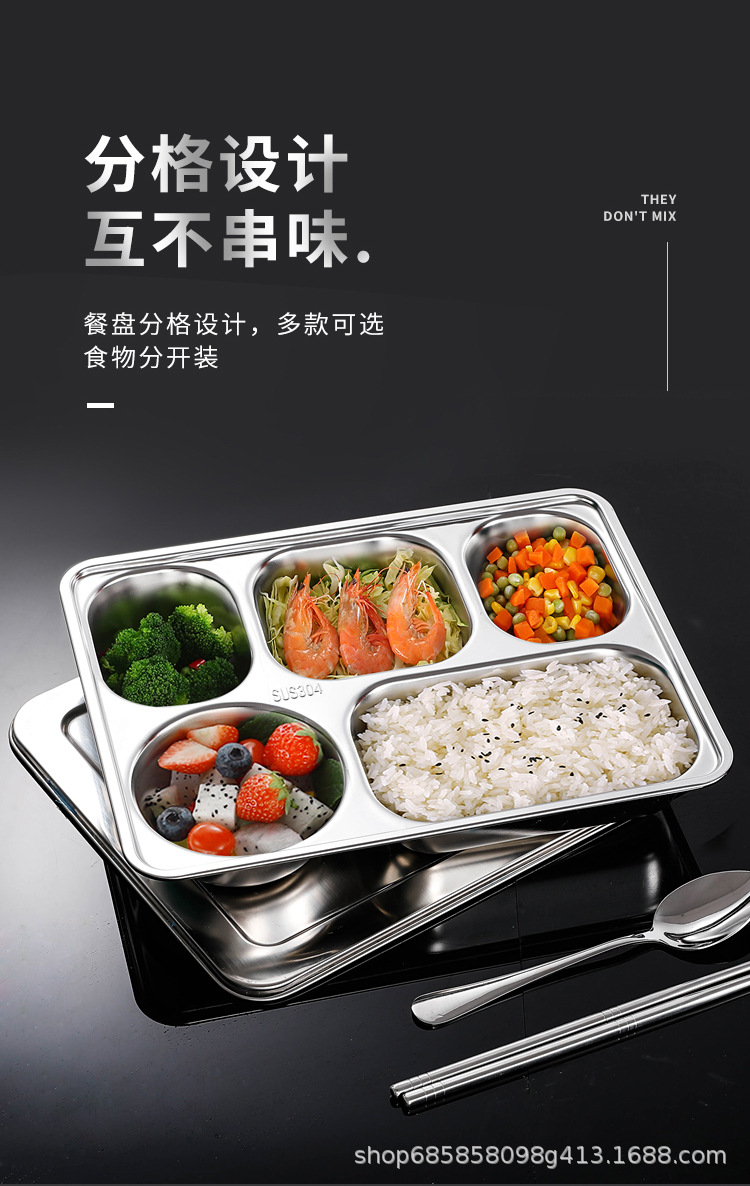 SUS304不锈钢快餐盘加厚分格餐盘儿童幼儿园学校食堂学生餐具套装
