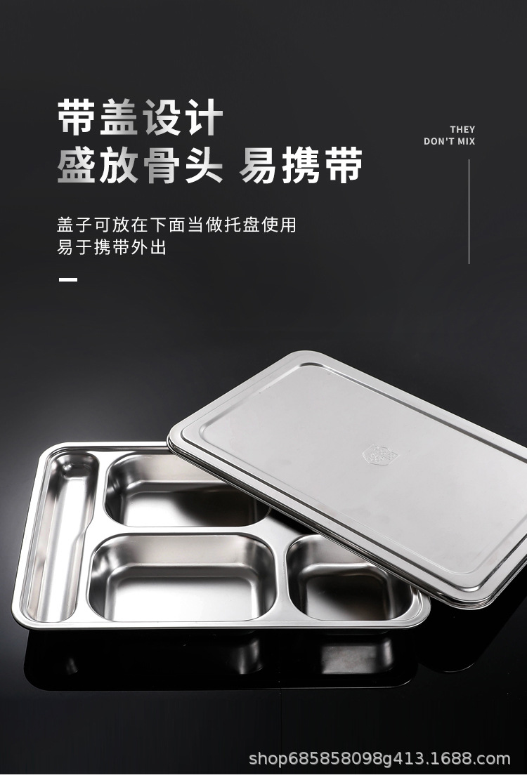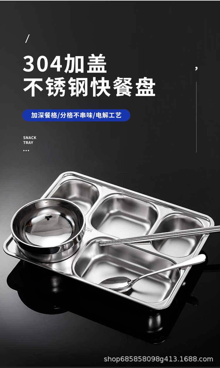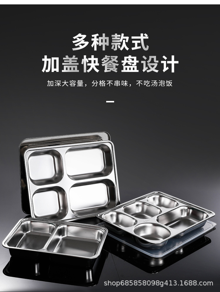 304不锈钢餐盘 加深加厚食堂快餐盘成人学生儿童分格餐盒餐盘带盖