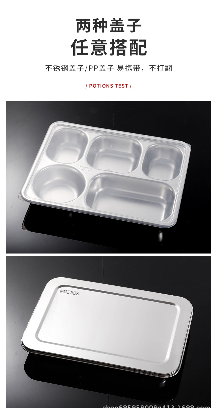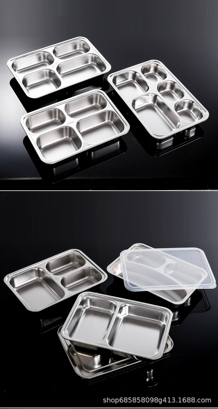 304食品級ステンレス料理皿分格蓋付き成人三格従業員ご飯弁当箱学校学生ファストフード皿