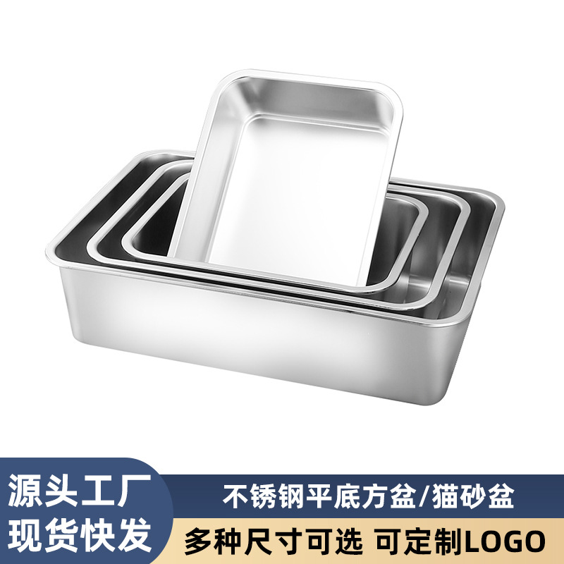 ステンレス製の四角いプレート、厚底の平底四角い鉢、長方形のステンレス製の鉢、食堂のビュッフェ用の鉢、ステンレス製の猫砂入れ