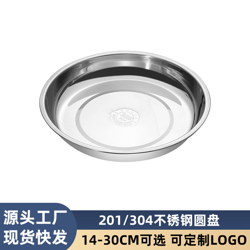 批发304不锈钢圆盘加厚商用酒店餐厅厨房不锈钢菜盘家用不锈钢盘