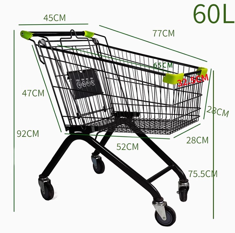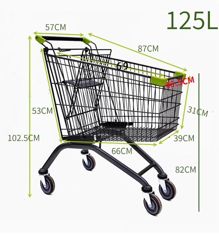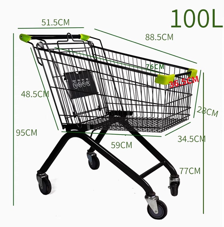 スーパーマーケットのショッピングカートのヨーロッパ式の金属スーパーマーケットの手押し車の不動産の倉庫の貨物車のショッピングカートのデパートの手押し車