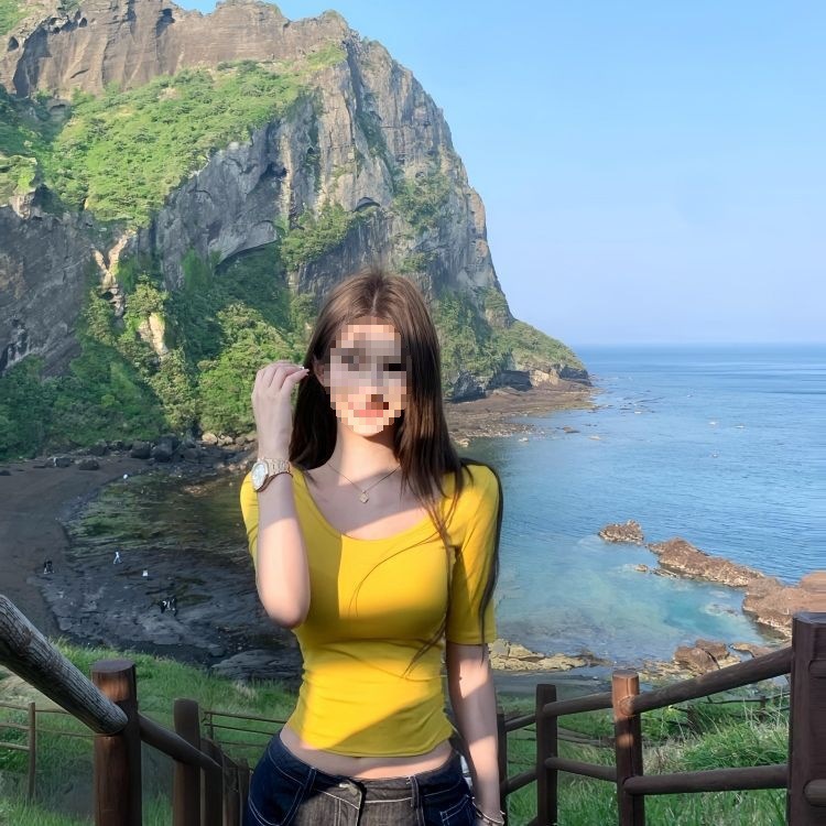【モダールレーヨン260g】ホットガール右肩へそ出し半袖Tシャツ韓国風ラウンドネックスリムフィットショートトップ