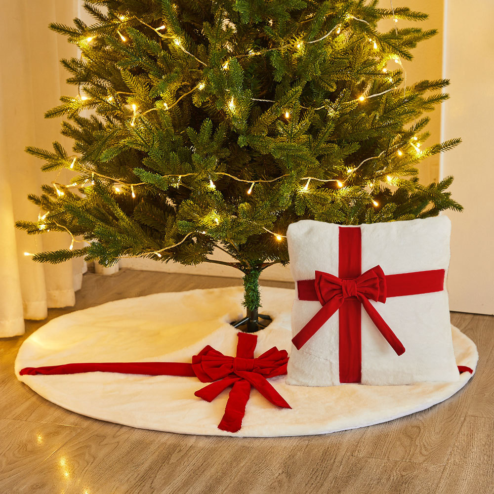 跨境圣诞节桌旗椅套树裙装饰品蝴蝶结毛绒抱枕家居餐桌桌布椅子套
