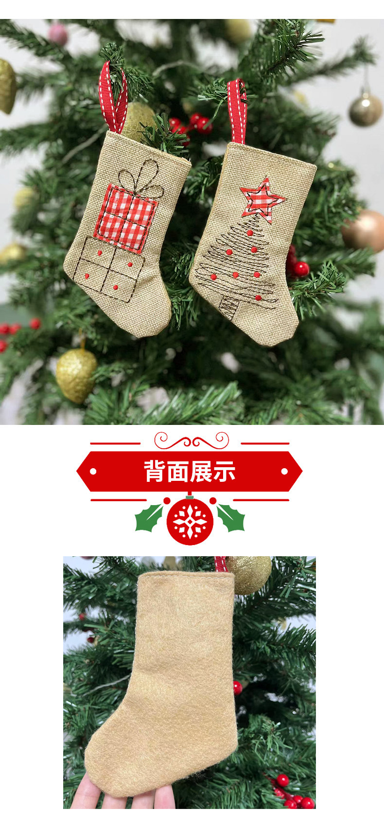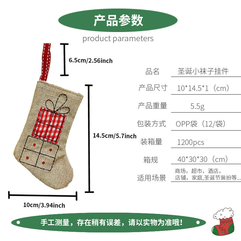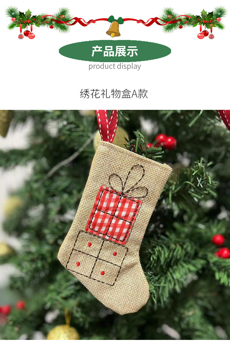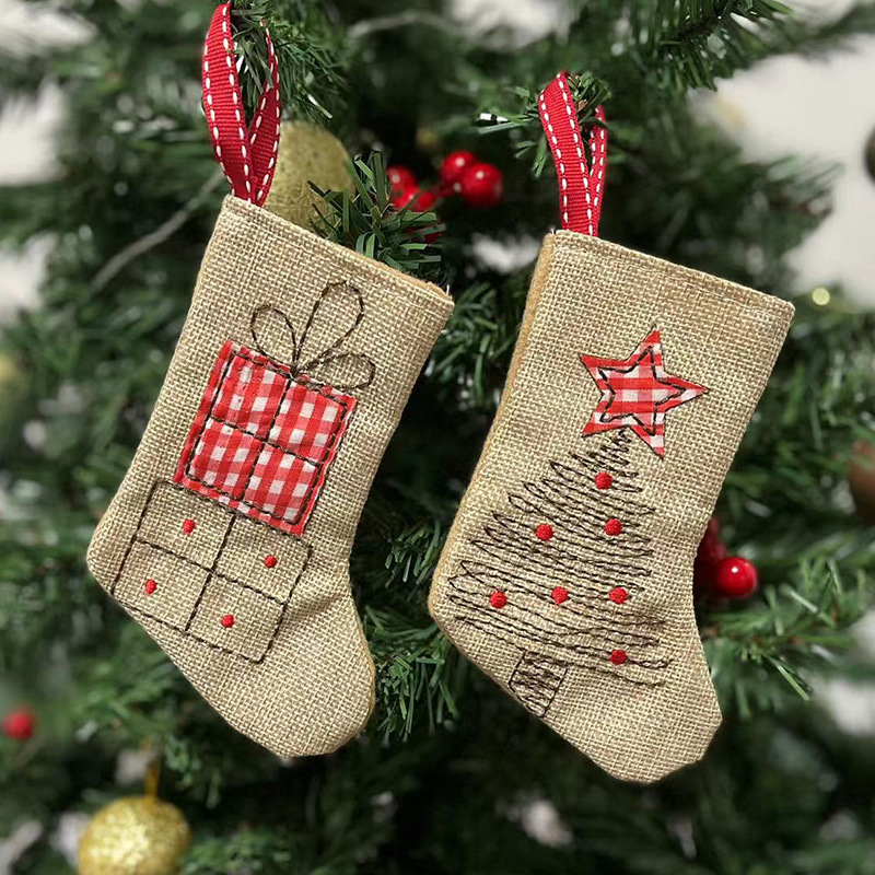 クロスボーダークリスマスリネン刺繍クリスマスソックスキャンディギフトソックスクリスマスツリーインテリア装飾アレンジメントペンダント