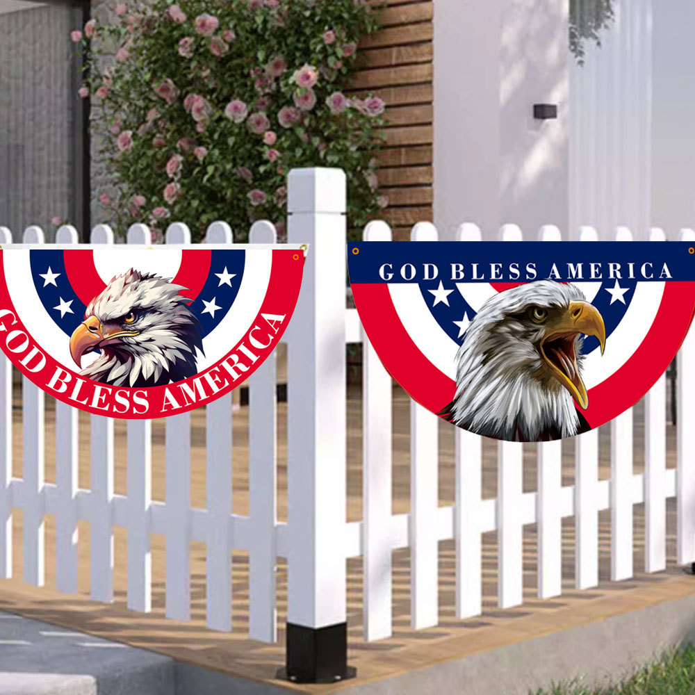 クロスボーダー新しいアメリカ独立記念日ガーデンフラッグ半円旗ストライプイーグルプリント中庭フェンス吊り下げ扇形旗