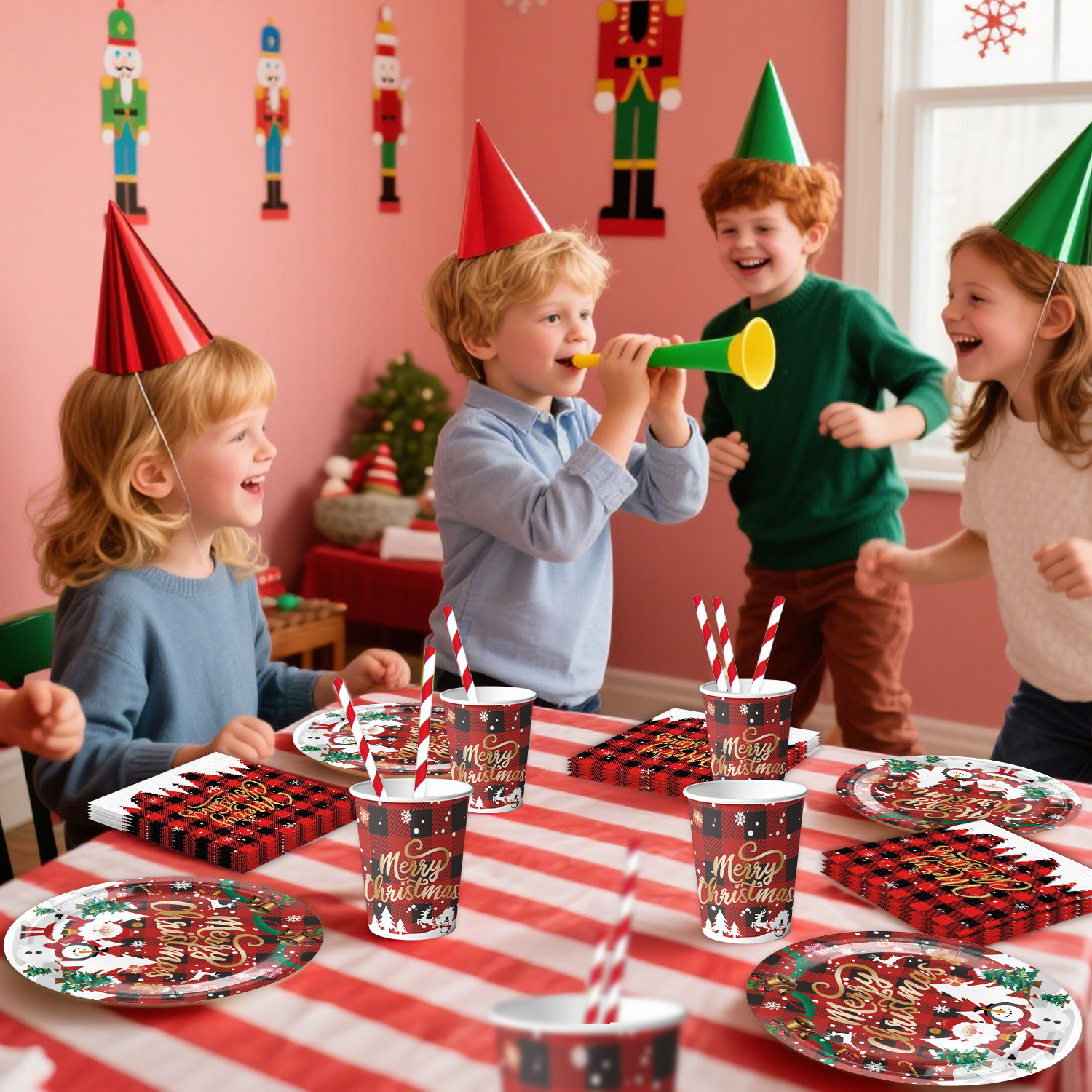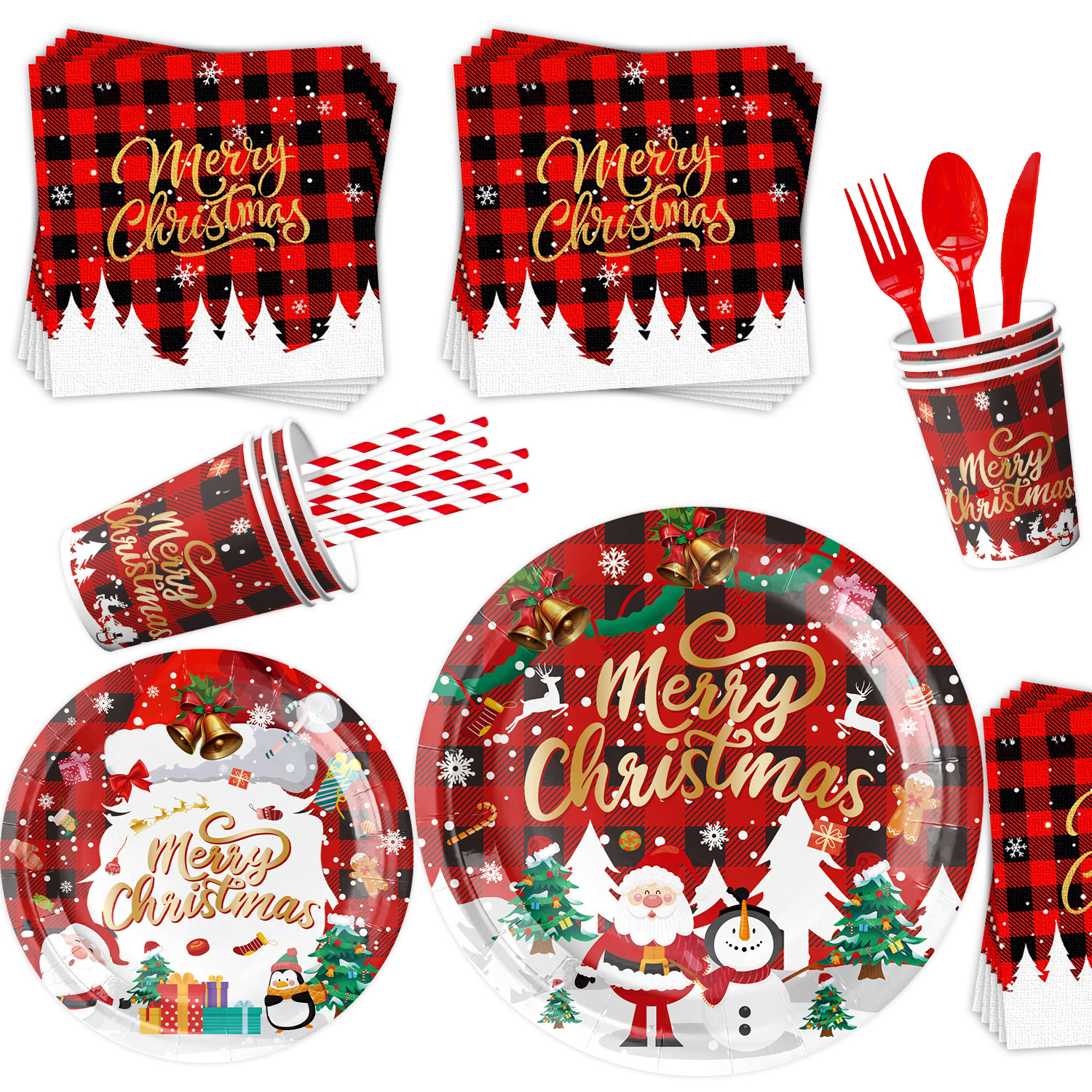 2025跨境圣诞节派对聚会装饰圣诞老人纸杯纸盘刀叉勺吸管套装批发