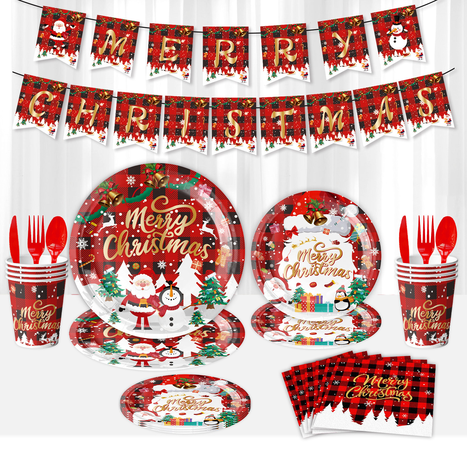 新しいクリスマステーマのパーティー用品ホリデーデコレーションパーティーレイアウトクリスマスフラグ紙皿紙コップティッシュ