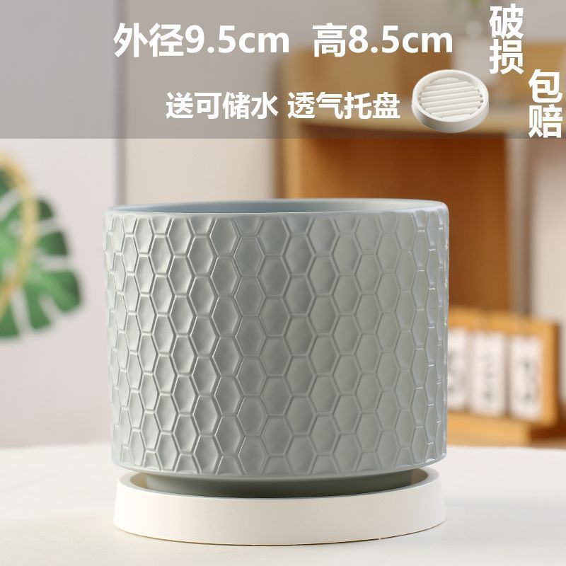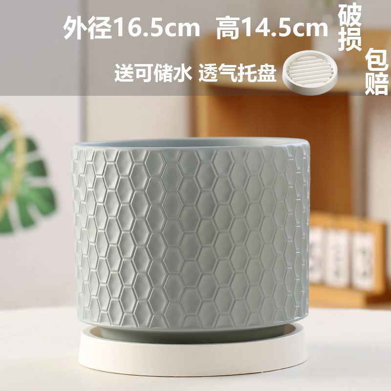 高颜値陶磁器植木鉢トレイ付き白色シンプル北欧ins風多肉植木鉢ネット赤百合家庭用鉢