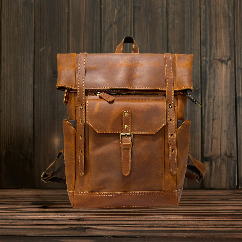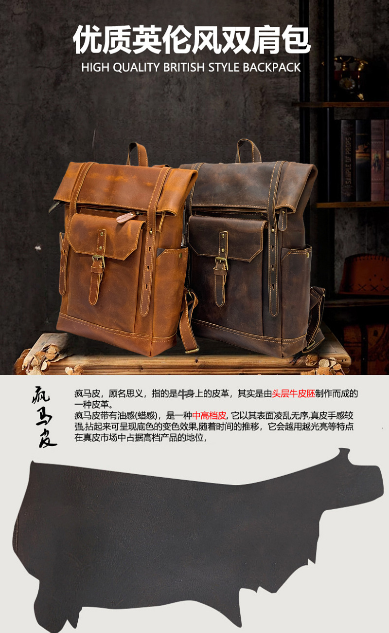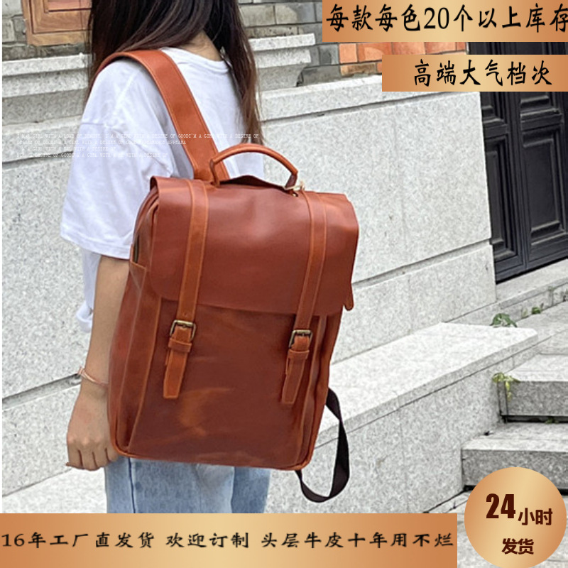 レトロ手作り狂馬皮ランドセル男性大容量真皮かばん旅行機関車バッグ対外貿易アマゾン