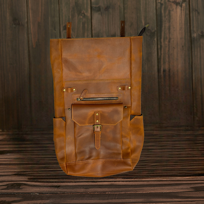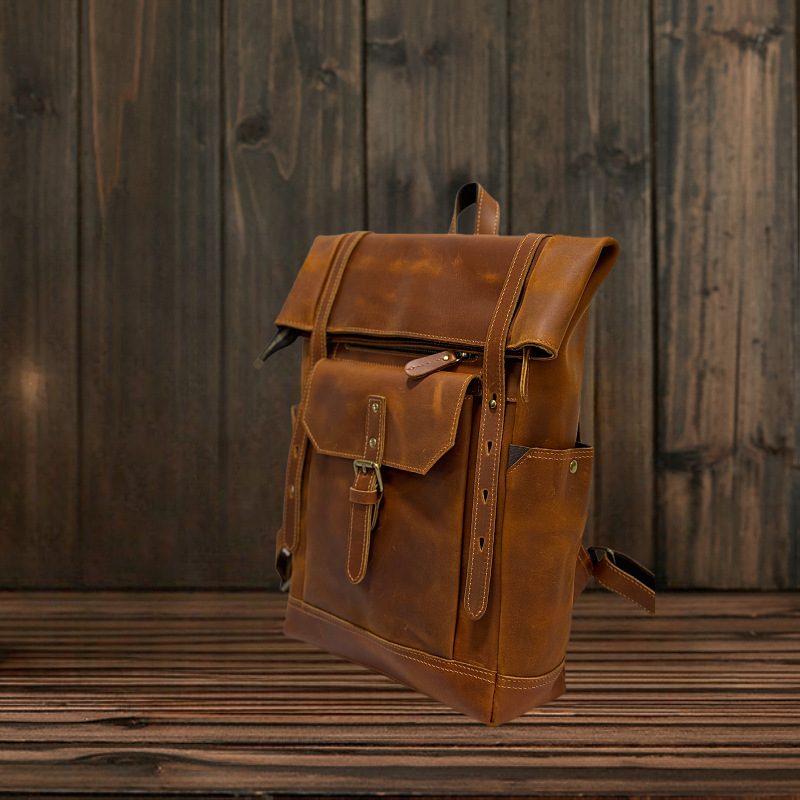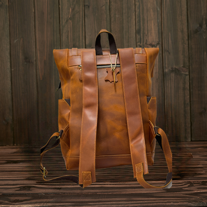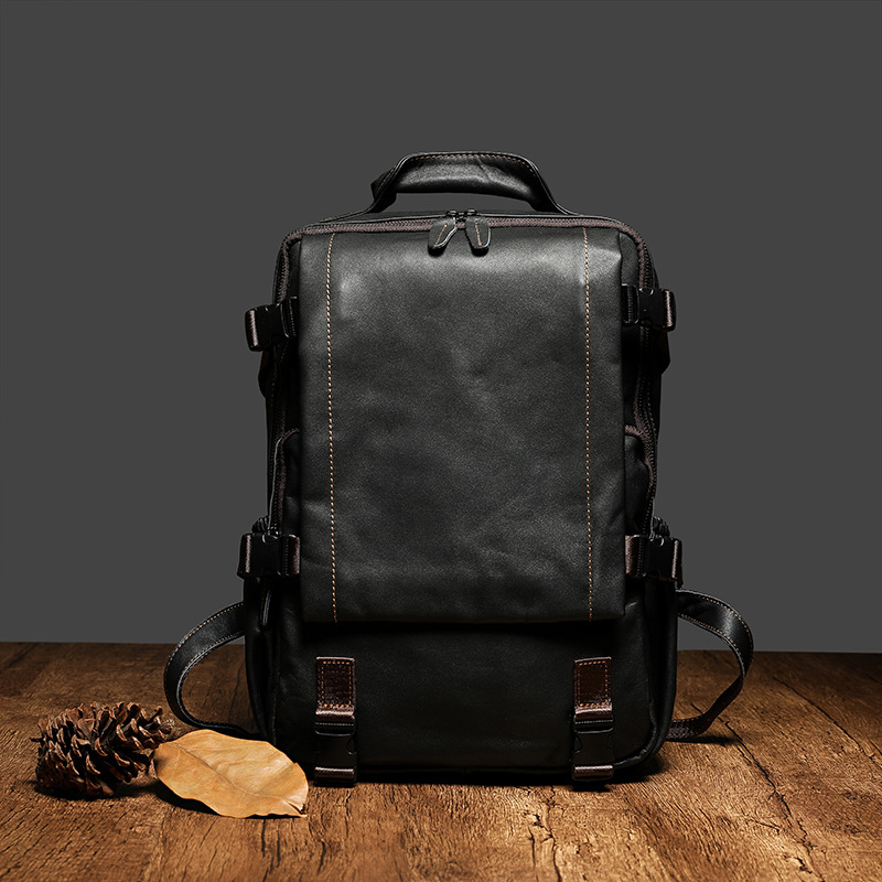 植物タンニンなめし牛革コンピュータバッグバックパックメンズ大容量折りたたみコンピュータメンズトラベルバックパック湾曲したショルダーストラップ