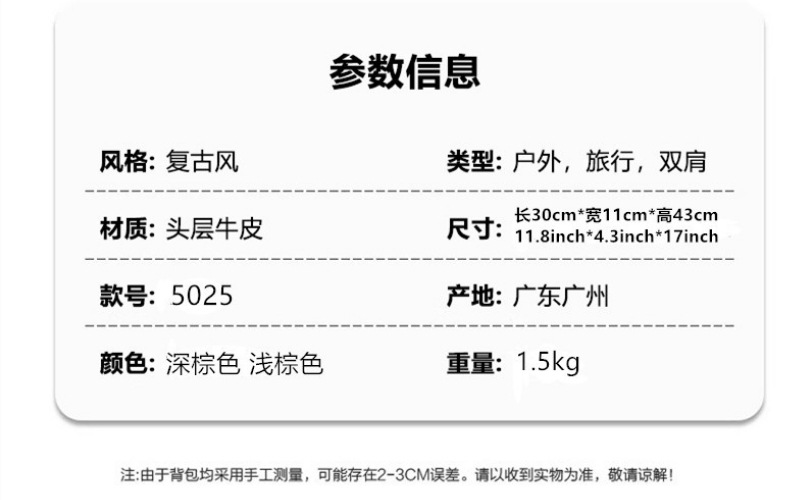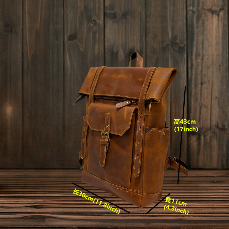 跨境复古疯马皮背包男士真皮大容量牛皮旅行背包16寸电脑双肩包潮