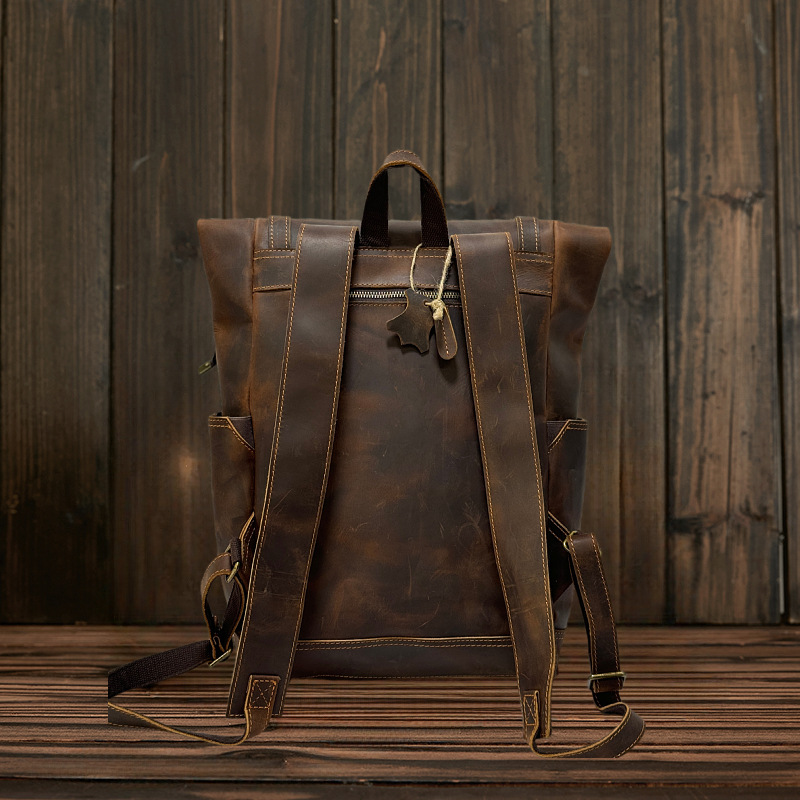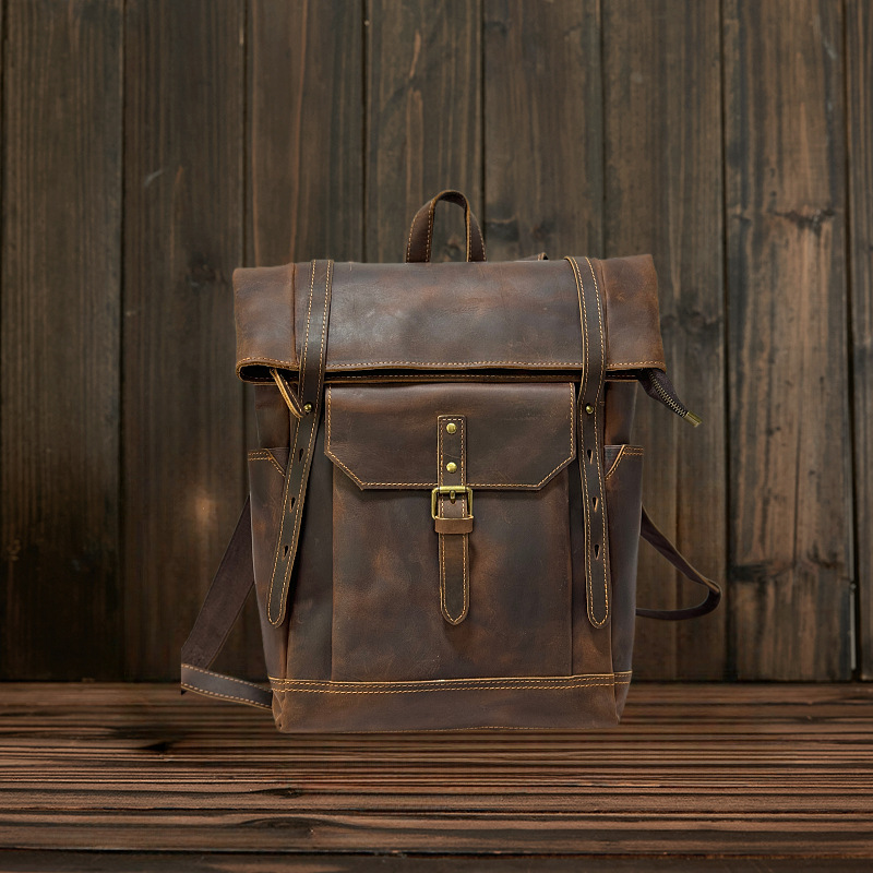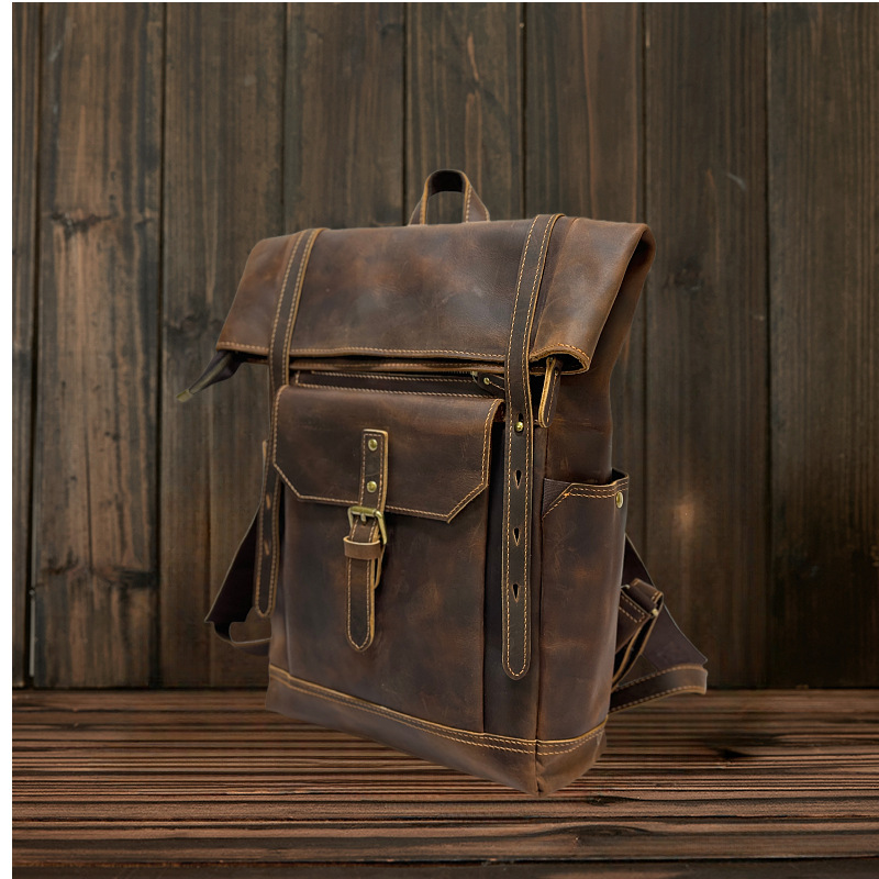 クロスボーダー一級牛革欧米風メンズ本革バックパック大容量旅行用16inchパソコン対応クレイジーホースレザー製ショルダーバッグ