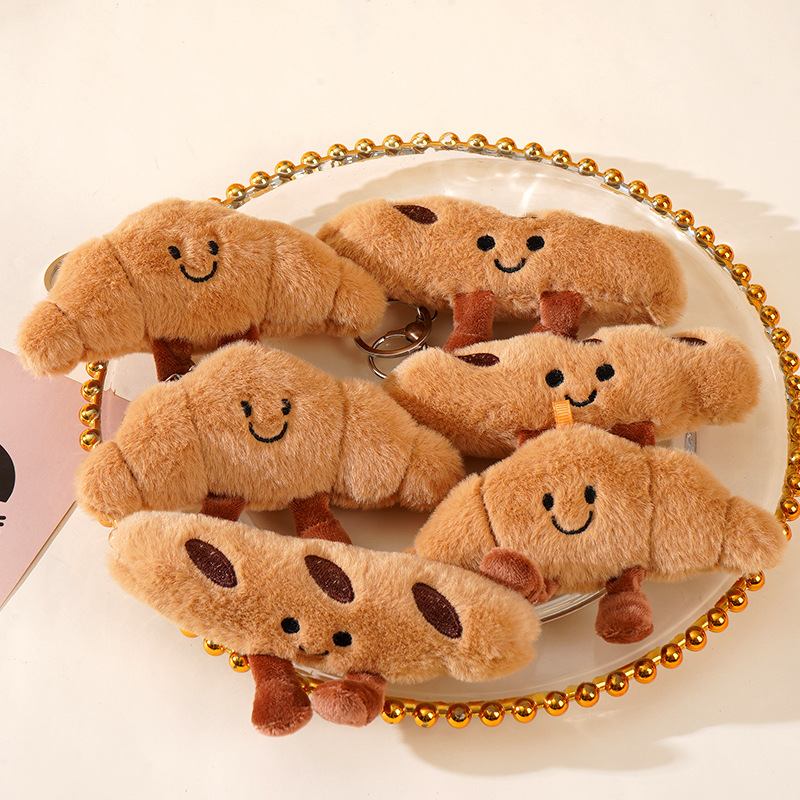 美食公仔面包条包包挂饰可爱卡通法棍牛角包毛绒挂件抓娃娃机批发