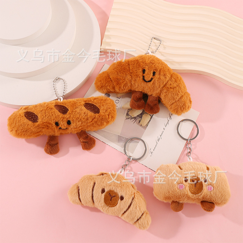 可爱法棍牛角包毛绒挂件食物系列玩偶甜品公仔面包汽车钥匙扣挂饰