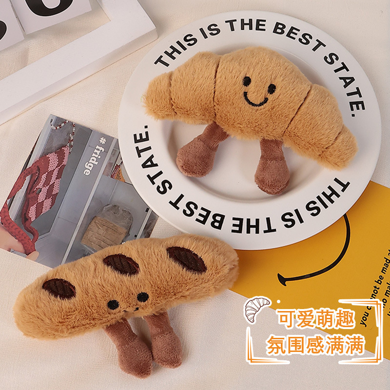 可爱萌法式法棍毛绒面包条玩偶可颂牛角包公仔钥匙扣挂件书包挂饰