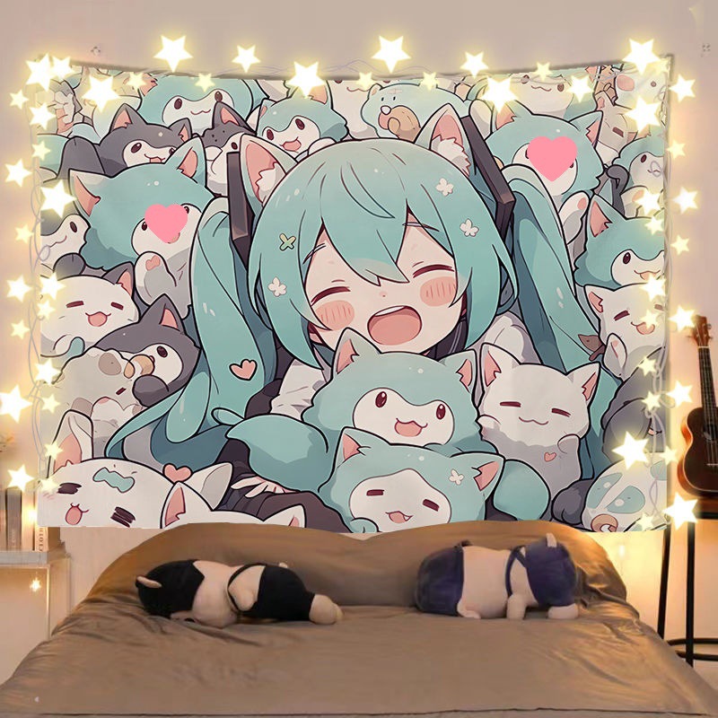 初音ミク【miku】イラスト アニメ背景布 部屋 寝室 ライブ配信 ベッドサイド改修 壁布 吊り下げブランケット