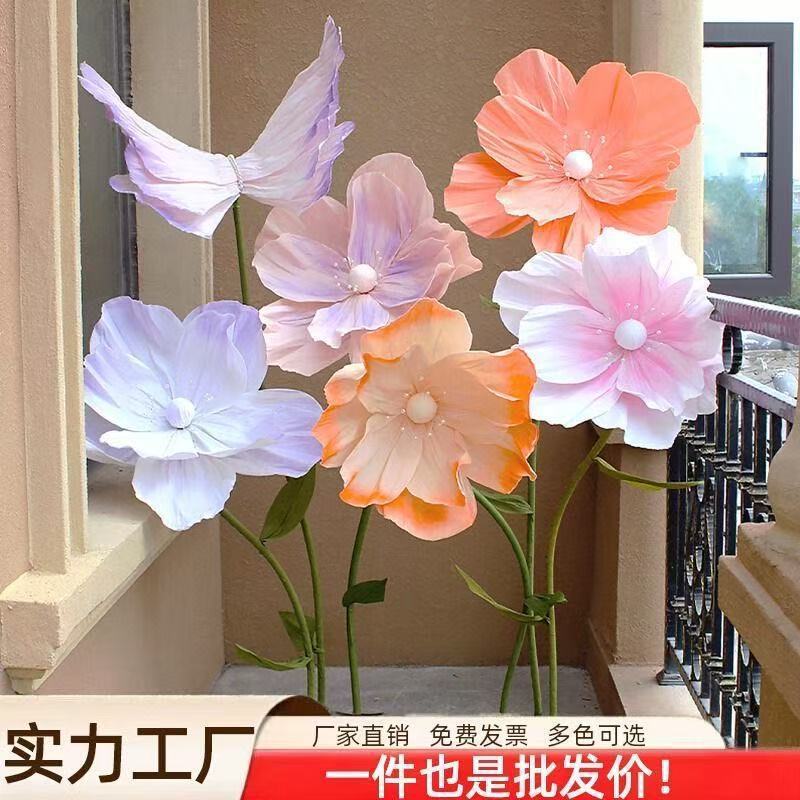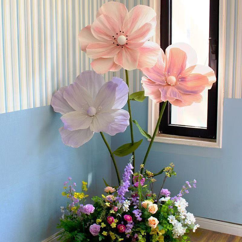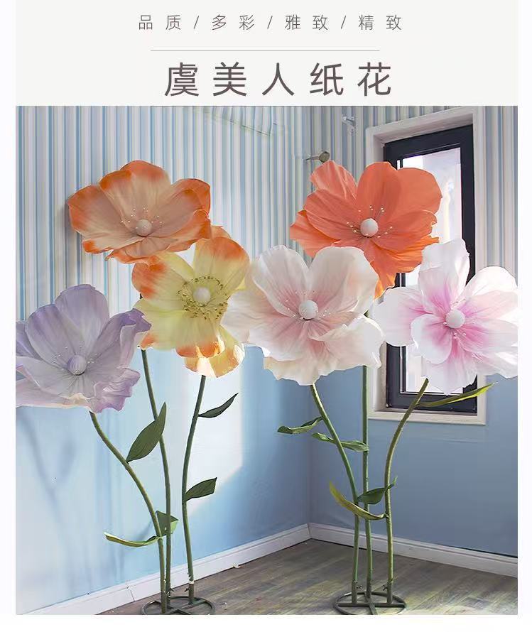 大型虞美人巨型婚礼纸艺花商场道具美陈橱窗活动布置婚庆装饰花朵