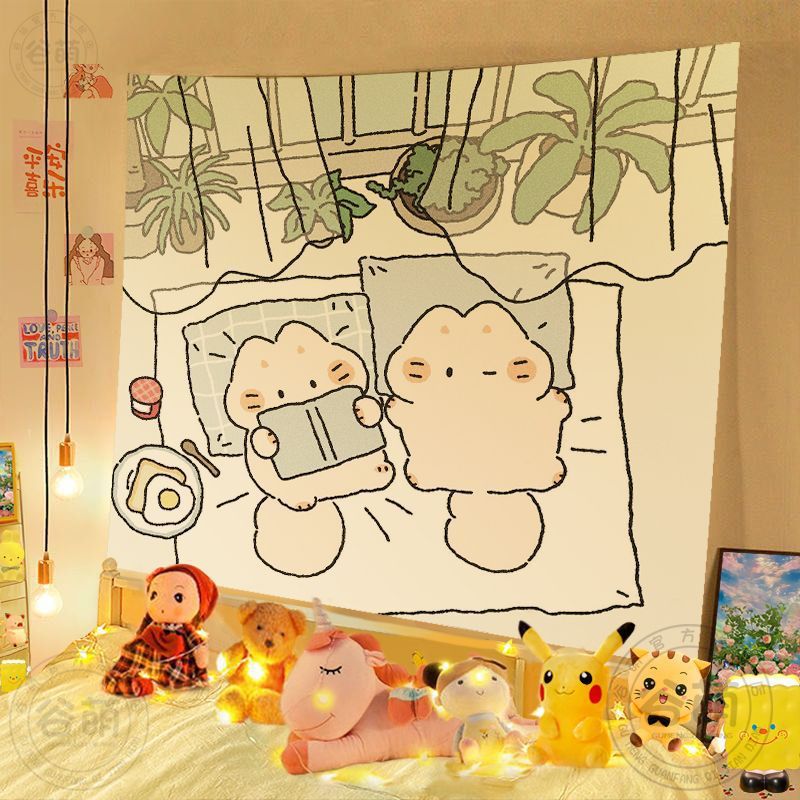 漫画手描きイラストインスタイル背景布かわいい動物ルームベッドサイド寮装飾ライブブロードキャスト吊り布